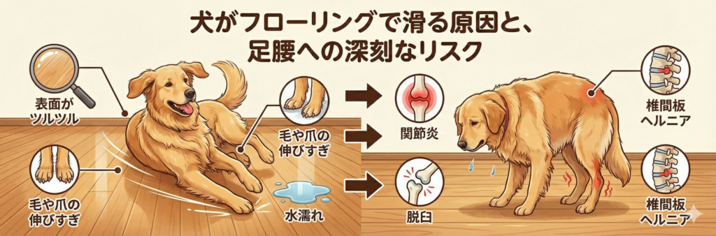 犬がフローリングで滑る原因と、足腰への深刻なリスク