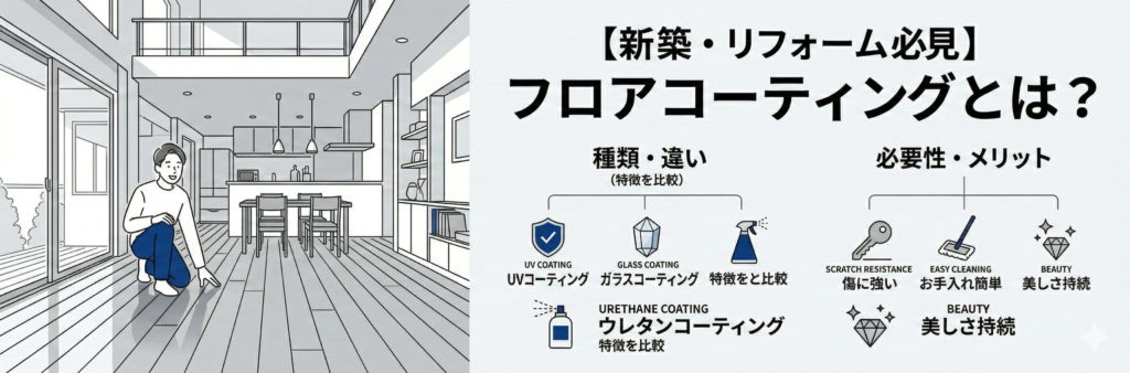 フロアコーティングは、一度の施工でフローリングを長期間保護できる、住まいへの確かな投資です。ただ、種類が多く「どれを選べばいいか分からない」「本当に必要なの?」と迷われる方も多いのが実情です。